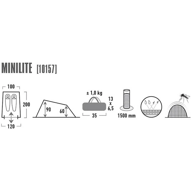 Super light single skin tent. Easy to itch with two red coloured fibreglass poles. Seam taped. Two permanent ventilation. Full mesh door. Smallest pack size fit even in a backpack side pocket. One to two person tent for summer events.