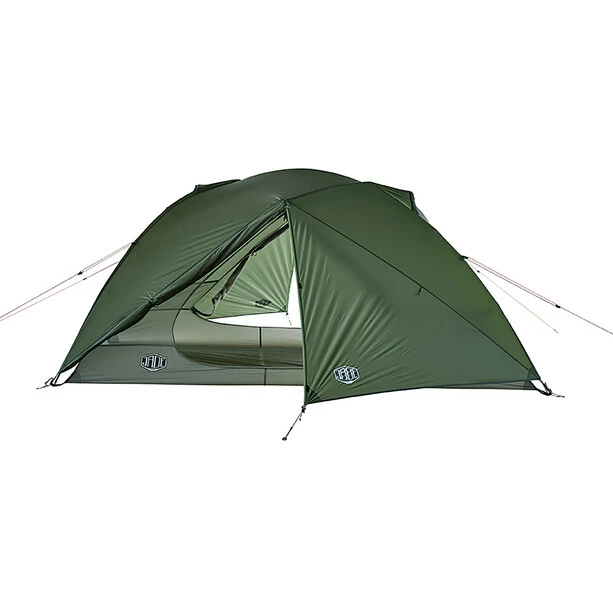 The Jade 2 from Nomad is an ultra-light trekking tent made of lightweight materials. When packed, it is extremely compact and ideal for traveling. The shape of the poles provides a little more space at the head and feet, so that the tent can be used effectively. Inside are several storage compartments and a hanging point for a light. The inner tent is freestanding. So the outer tent can be left out for a clear view of the starry sky at night. Poles and pegs are made of high quality and durable aluminum DAC.
