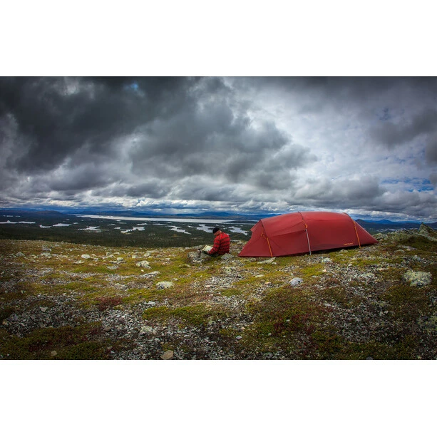 The Oppland 3 LW is a highly versatile and spacious tent, weighing just 1.98kg. The inner width of 190cm makes it one of the widest 3 person tents on the market with plenty of space for three, plus room for storage, cooking and living in the large porch. It is easy to pitch and has an aerodynamic tunnel construction providing excellent strength. The Oppland 3 has a large vent at each end of the tent and with one door, it offers a variety of possibilities for optimal ventilation and a great indoor climate. It has concealed pole channels, DAC poles and Dyneema guy ropes.