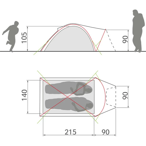 - Versatile two-person tent with throw-over construction and extended anteroom
