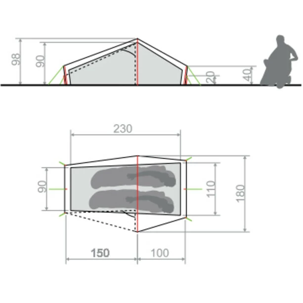 - Material outer tent: Polyamide 20 D Ripstop, silicone coating on both sides