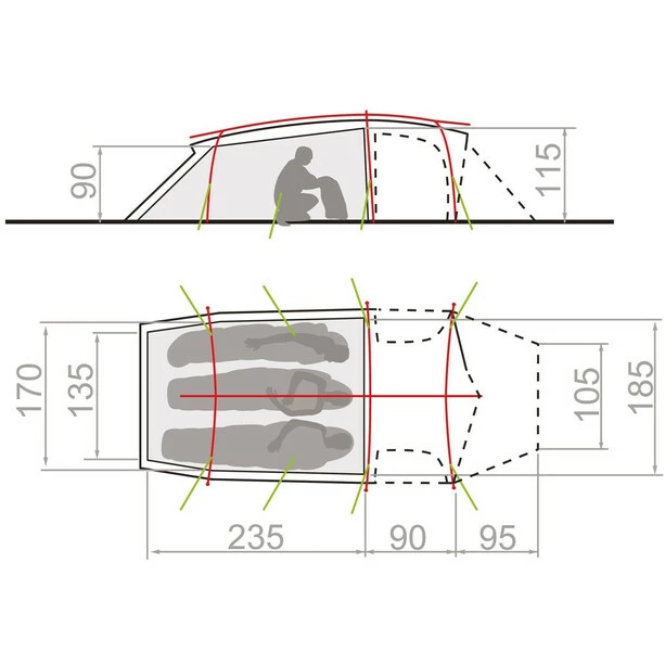 - Material outer tent: Polyamide 40 D Ripstop, silicone coating on both sides