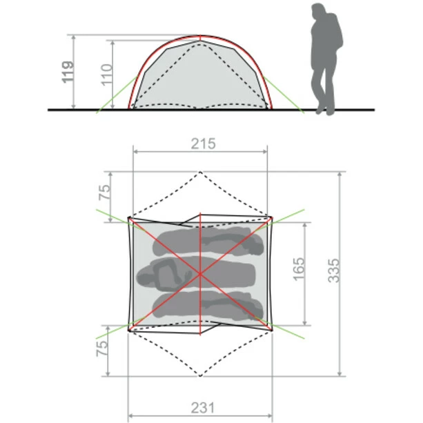 - Outer tent material: 20 D polyamide ripstop. Both sides silicone coated